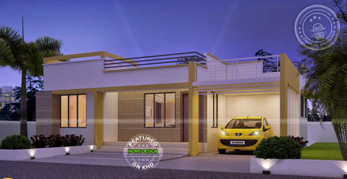 ออกแบบรูปทรงของบ้านที่เรียบง่าย บ้านหลังเล็กหลังคาสแลปเรียบๆ ดูออกแบบง่ายๆ ในสไตล์โมเดิร์น ทูโทน ขาว-เหลือง ดูเรียบร้อยแต่ก็สวยงามมาก