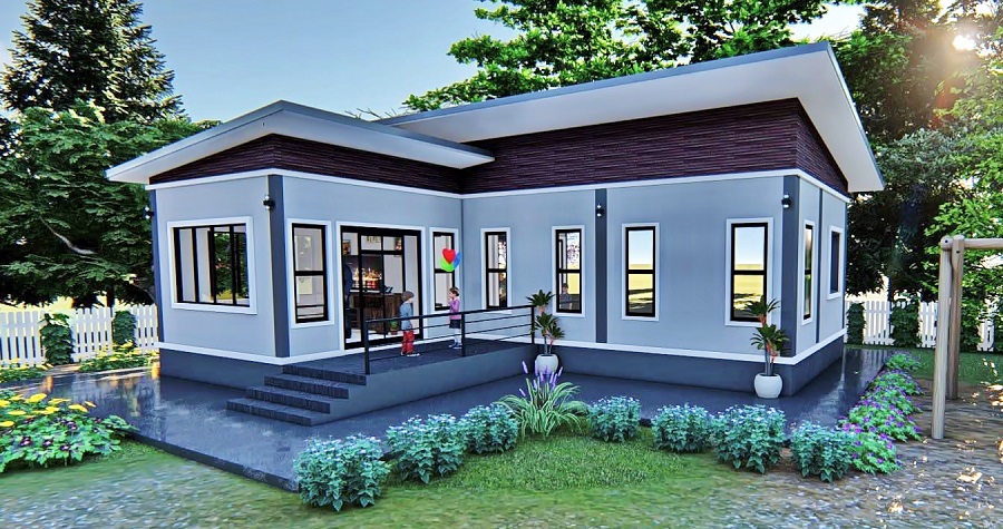 แบบบ้านรูปตัวแอลสไตล์โมเดิร์น ประกอบไปด้วย 2 ห้องนอน 1 ห้องน้ำ ห้องรับแขก ห้องครัว และเฉลียงหน้าบ้าน ใช้งบประมาณในการก่อสร้างราว 6.5 แสนบาท (ไม่รวมที่ดิน) หากเพื่อนๆ ชื่นชอบก็ลองสอบถามรายละเอียดเพิ่มเติมได้จากที่มาด้านล่างนี้กันได้เลยนะคะ
