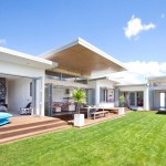 ตัวบ้านสองชั้นครึ่ง ซึ่งออกแบบให้มีหลังคาแบบลาดเอียงเป็นจุดเด่น ทำให้พื้นที่ด้านในค่อนข้างโปร่ง ภายนอกใช้วัสดุปูน ไม้ระแนงตีสร้างลวดลาย และกระจกเสริมความโปร่ง