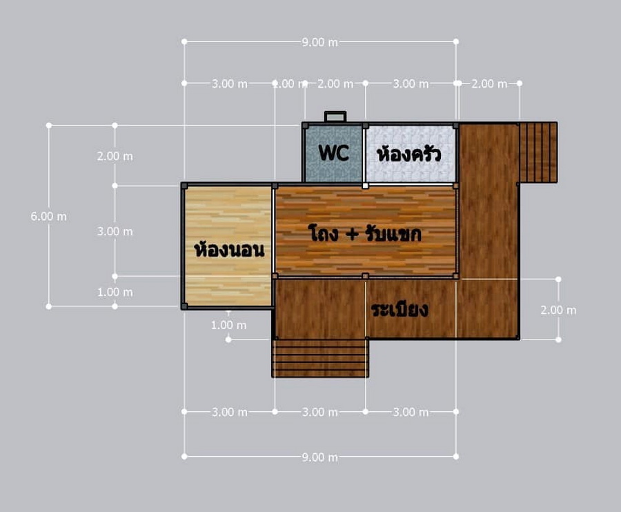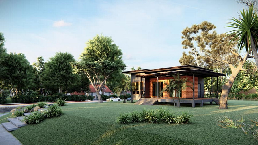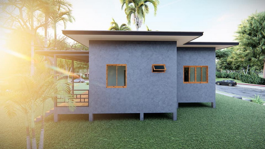 แบบบ้านยกพื้นสไตล์โมเดิร์นลอฟท์หลังนี้ประกอบไปด้วย 1 ห้องนอน 1 ห้องน้ำ 1 ห้องโถงนั่งเล่น 1 ห้องครัว พร้อมระเบียงกว้างนอกบ้าน พื้นที่ใช้สอยทั้งหมดประมาณ 90 ตารางเมตร