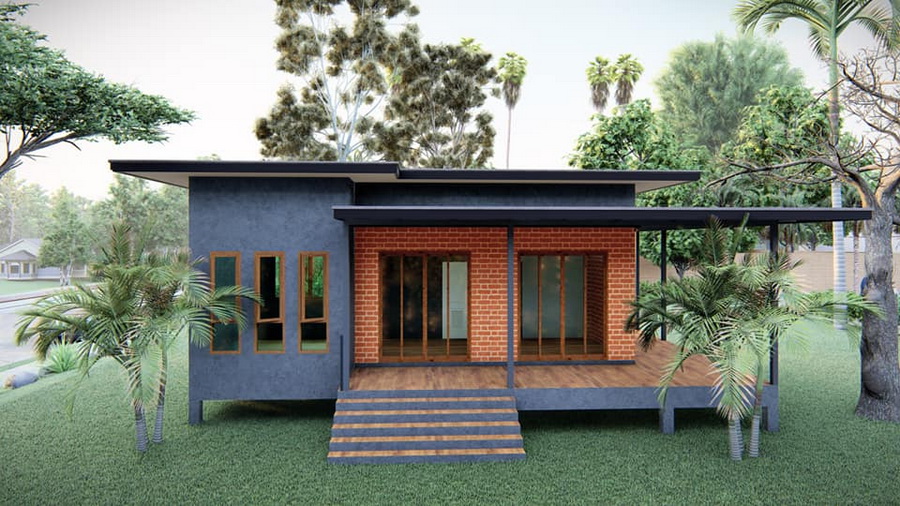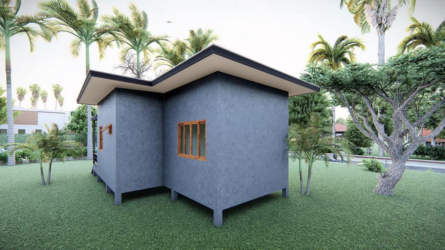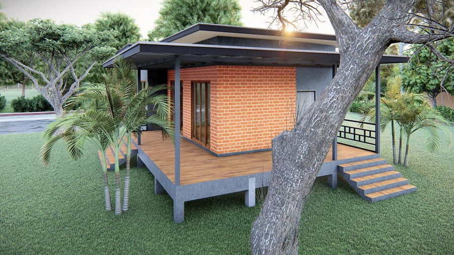บ้านหลังนี้เป็นบ้านขนาด 1 ห้องนอน ภายในจึงมีพื้นที่ใช้สอยที่อาจจะไม่มาก สถาปนิกจึงชดเชยด้วยการออกแบบเฉลียงนอกตัวบ้านที่มีพื้นที่เปิดโล่ง เพื่อให้มีมุมพักผ่อน หรือมุมใช้งานที่ให้บรรยากาศแบบไม่อึดอัด