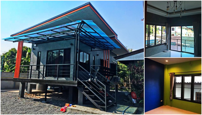 บ้านสไตล์โมเดิร์นลอฟท์ มีพื้นที่ใช้สอยราว 65 ตารางเมตร ประกอบไปด้วย 2 ห้องนอน 1 ห้องน้ำ ห้องโถงกลาง และระเบียงหน้าบ้าน ใช้งบประมาณในการก่อสร้างทั้งหมด 650,000 บาท (ไม่รวมเฟอร์นิเจอร์) หากเพื่อนๆ สนใจก็ลองนำแบบกลับไปประยุกต์ดูก่อนได้นะคะ