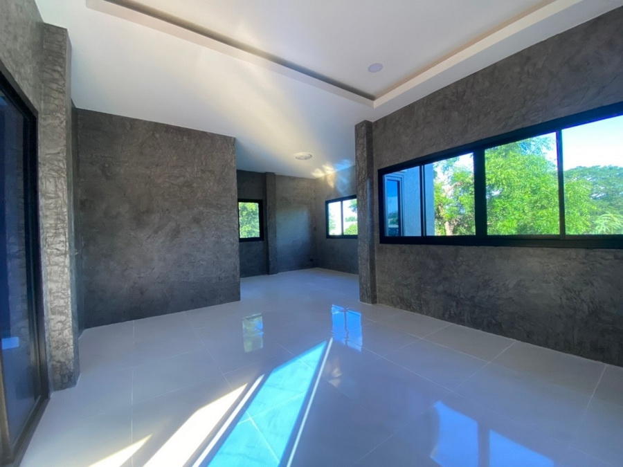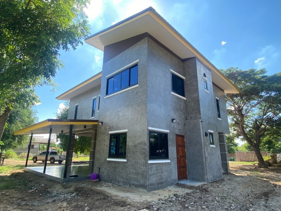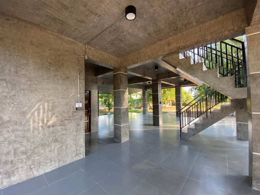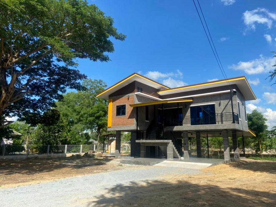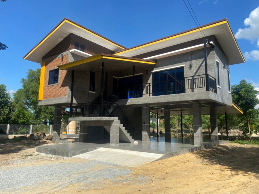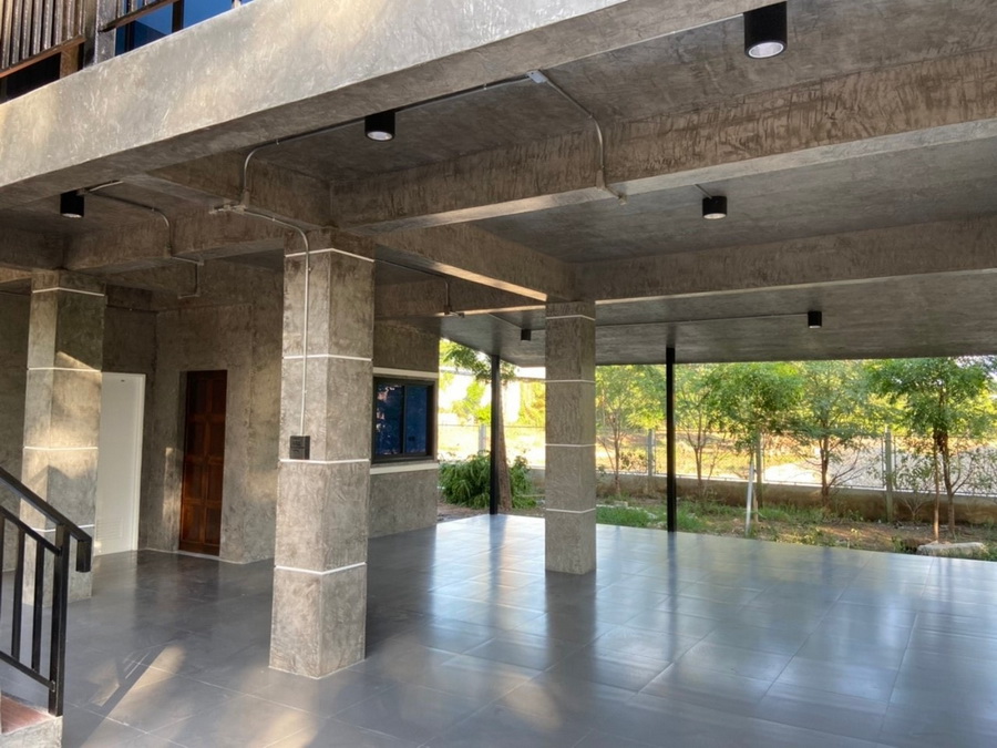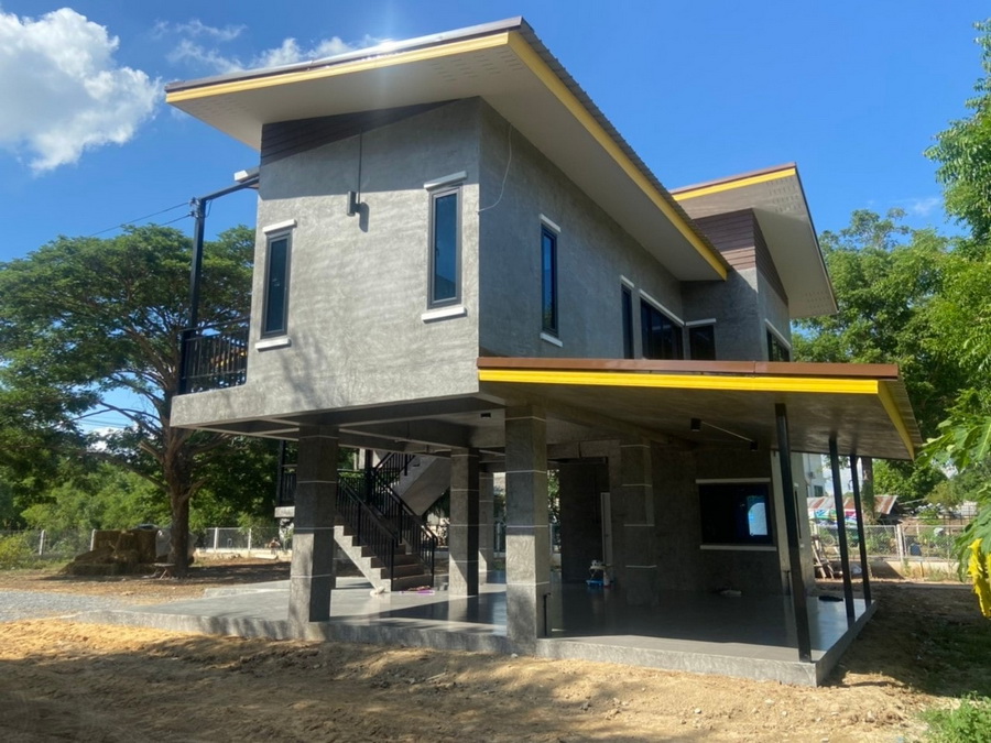 บ้านสองชั้นสไตล์โมเดิร์นลอฟท์ปูนเปลือยหลังนี้มาพร้อมกับใต้ถุนบ้านที่ถูกยกขึ้นสูง มีงบก่อสร้างเริ่มต้นที่ประมาณ 1.35 ล้านบาท