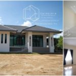 ลักษณะบ้านขนาดชั้นเดียว ออกแบบยกพื้นต่ำ รูปทรงของบ้านเป็นแบบโมเดิร์น หลังคาออกแบบด้วยหลังคารูปทรงเพิงหมาแหงน มุงด้วยกระเบื้องแบบเรียบ นอกจากนี้ บ้านหลังนี้ยังดีไซน์ให้มีพื้นที่ระเบียงหน้าบ้านสำหรับการพักผ่อนในบรรยากาศที่โปร่งสบายอีกด้วย