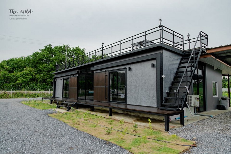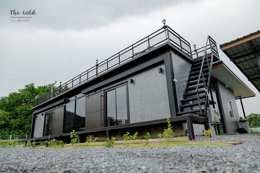 บ้านหลังนี้เป้นบ้านหน้ากว้างที่มีรูปทรงแบบโมเดิร์น ผสานเข้ากับการตกแต่งด้วยสไตล์แบบอินดัสเทรียลลอฟท์ ฐานของบ้านถูกยกขึ้นสูง โครงสร้างเป็นดครงโลหะที่ถูกประกอบเข้ากับอย่างแข็งแรง ผนังภายนอกตกแต่งด้วยผนังแบบปูนเปลือบแบบสวยดิบ ช่วยให้บ้านดูโดดเด่น