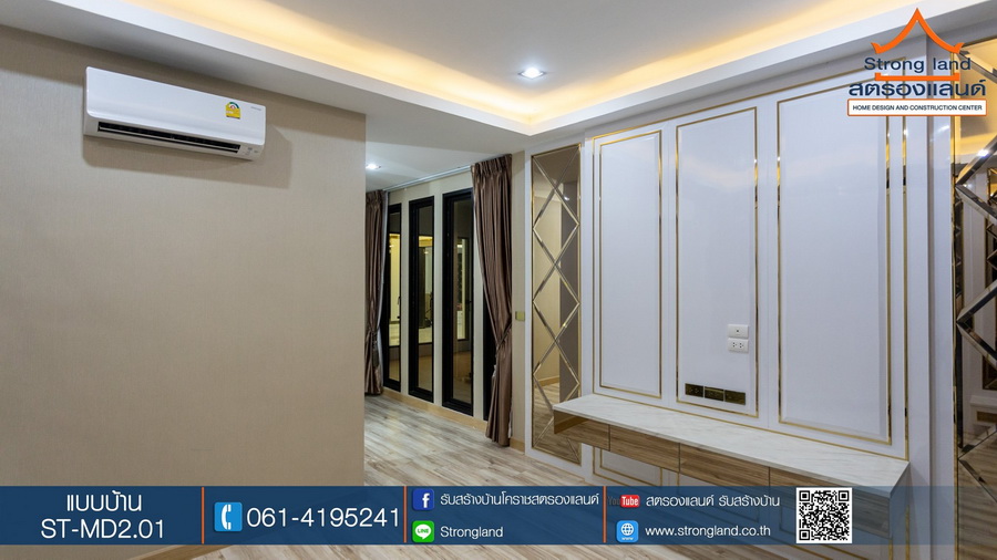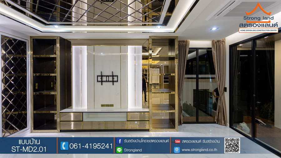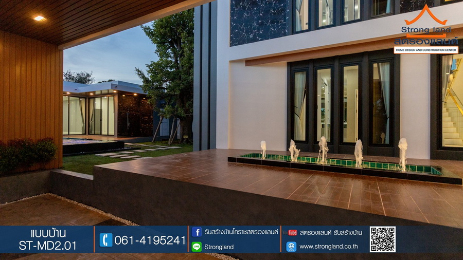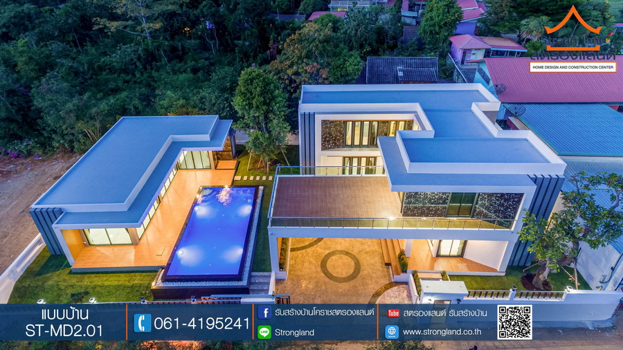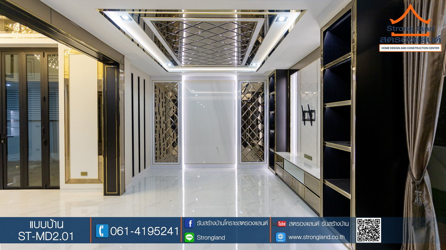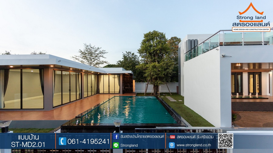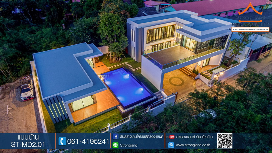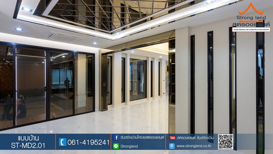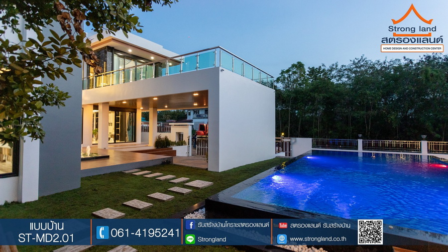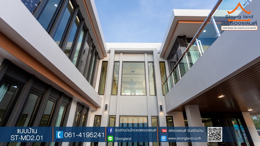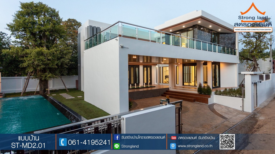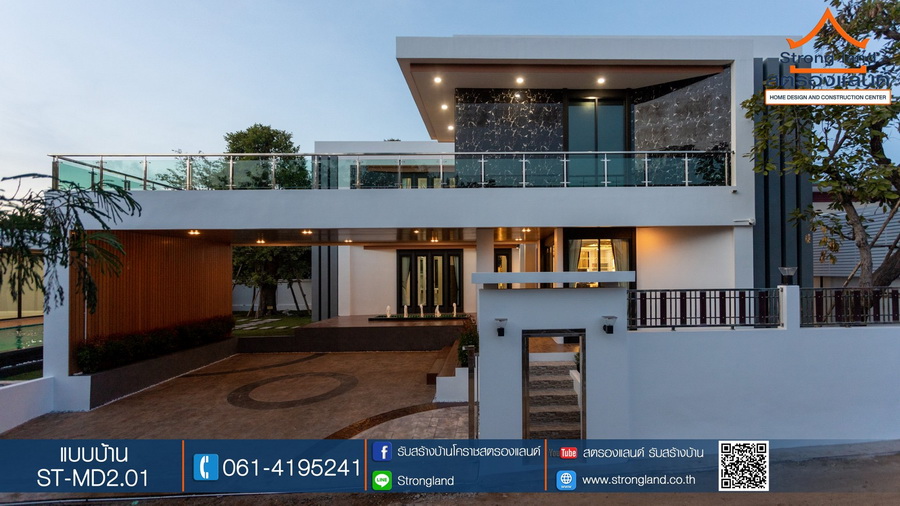บ้านพักอาศัยแนวโมเดิร์น ผลงานการออกแบบและก่อสร้างโดย STRONGLAND HOME DESIGN AND CONSTRUCTION บ้านหรูหราหลังใหญ่ที่เพรียบพร้อมไปด้วยพื้นที่ใช้สอยและสิ่งอำนวยความสะดวกในแบบสุดพิเศษ บ้านที่เป็นฝันและแรงบันดาลใจให้อีกหลายคนที่อยากมีบ้าน