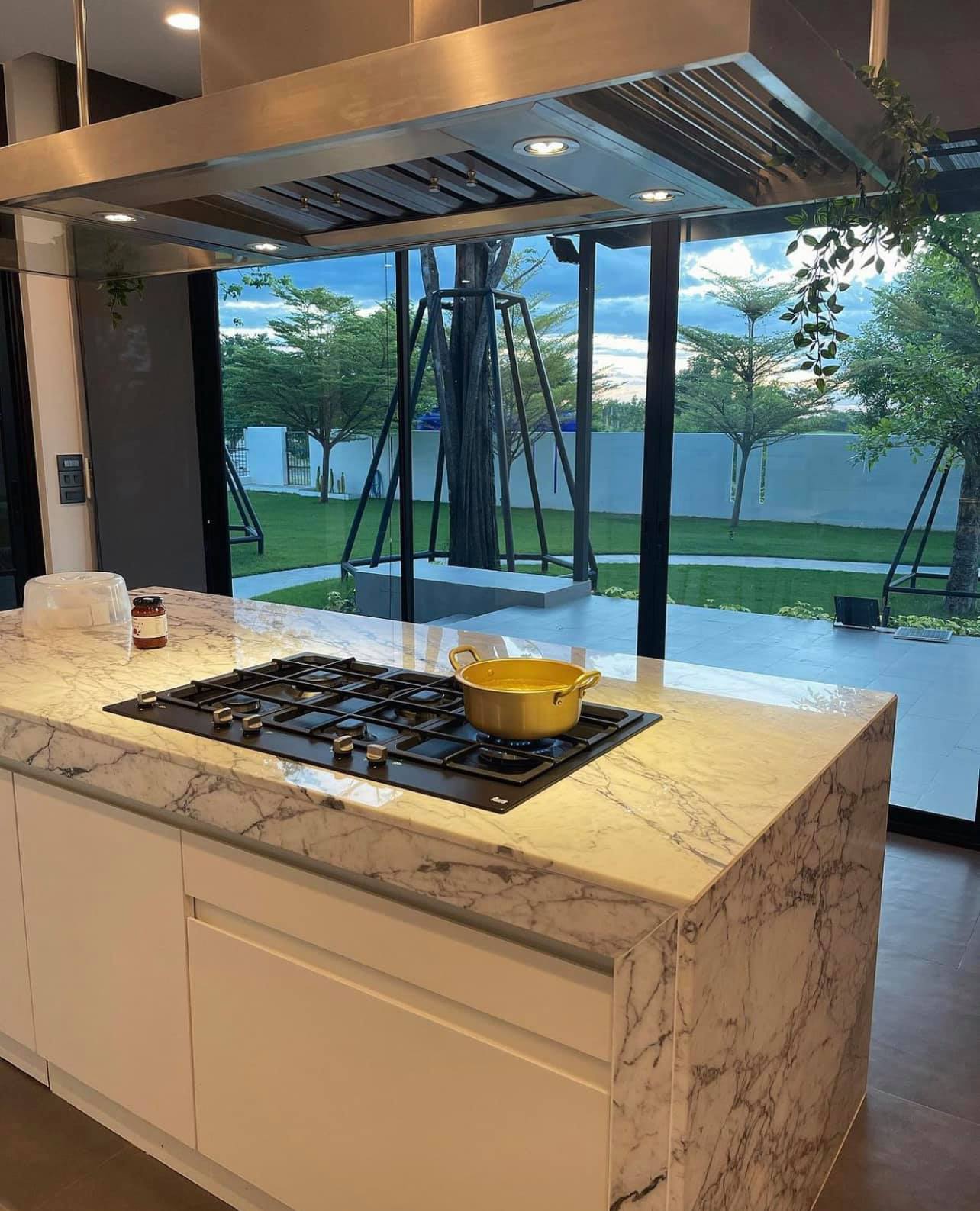 สำหรับห้องครัว เป็นห้องที่จะมีความเป็นครัวตะวันตกแบบโมเดิร์น ซึ่งสะท้อนผ่านการเลือกใช้องค์ประกอบภายในห้องที่ดูสวยงามทันสมัย