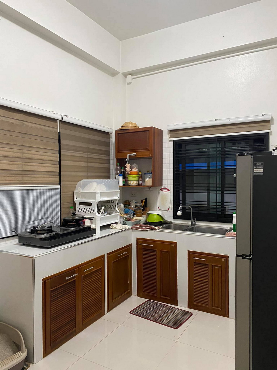 สำหรับห้องครัว เป็นห้องที่มีพื้นที่กำลังดี ภายในครัวตกแต่งด้วยเคาน์เตอร์แบบติดผนัง โปร่งสบายด้วยบานหน้าต่างขนาดใหญ่ที่ช่วยระบายกลิ่นและควันได้เป็นอย่างดี