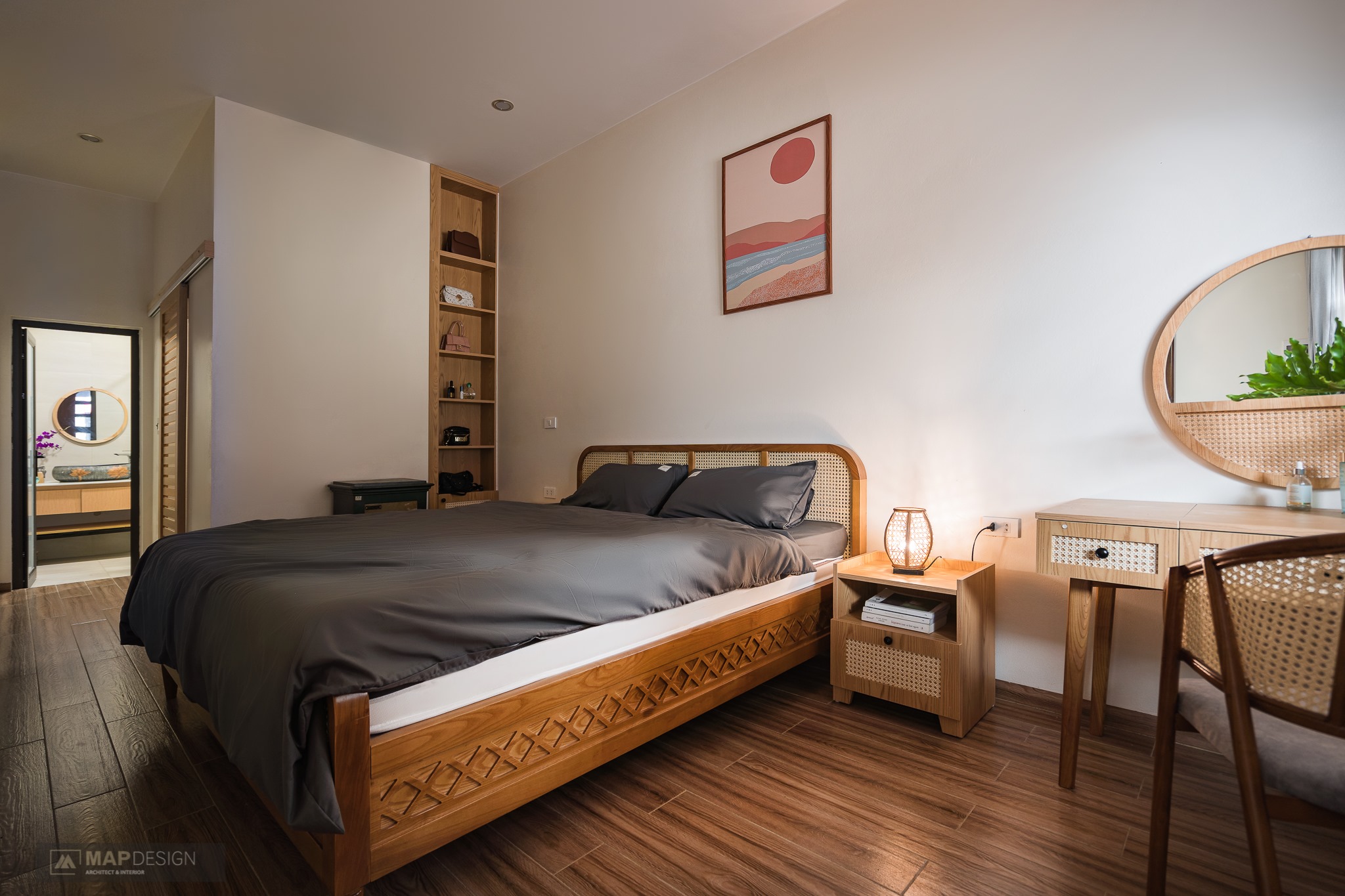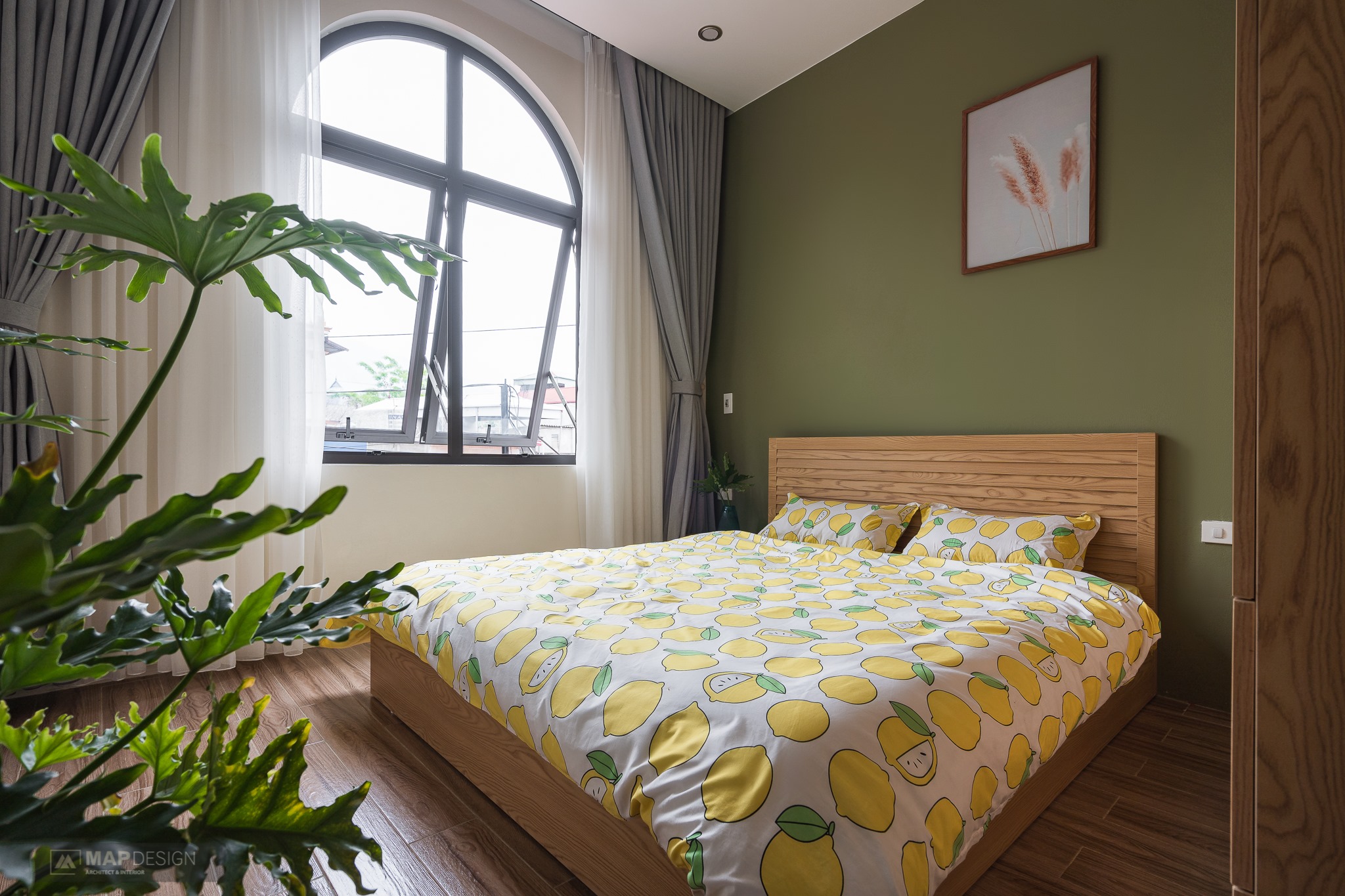 สำหรับห้องนอน ยังคงมีการตกแต่งดด้วยต้นไม้เล็ก ๆ พร้อมกับทาผนังห้องด้วยสีเขียว จึงทำให้ห้องนอนมีบรรยากาศที่ผ่อนคลายน่าพักผ่อนสุด ๆ