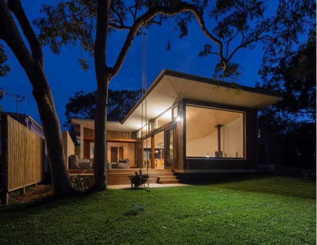 บ้านโครงสร้างคอนกรีต ออกแบบรูปทรงกล่อง ใช้หลังคาเพิงหมาแหงนที่ยื่นยาวแบบบ้านสมัยใหม่ สวยงามไปกับผนังไม้ที่ตกแต่งอยู่ กระจก โลหะ ถูกนำมาเติมแต่งให้แก่ตัวบ้านได้สวยงามแบบบ้านสมัยใหม่ยิ่งขึ้น