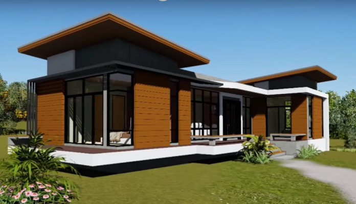 ลักษณะบ้านชั้นเดียว หลังคาทรงหมาแหงน พร้อมกับการตกแต่งด้วยผนังไม้ขัดเงา และกระจกให้บ้านดูโล่ง โปร่งสบาย ไม่รู้สึกอึดอัด โดยที่สามารถมองเห็นห้องนั่งเล่นผ่านผนังกระจกจากภายนอกได้