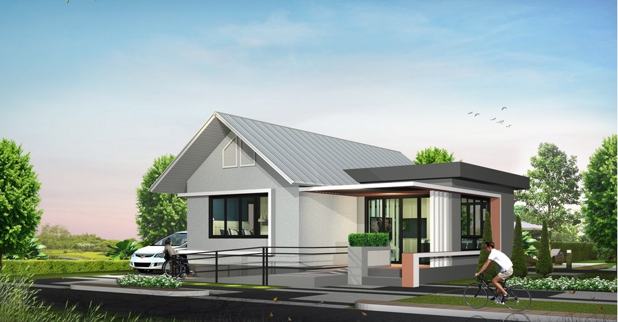 สำหรับแบบบ้านทรงไทยประยุกต์ ดีไซน์หลังคาทรงหน้าจั่วหลังนี้ประกอบไปด้วย 1 ห้องนอน 1 ที่จอดรถ 1 ห้องน้ำ พื้นที่ใช้สอย 58 ตรม.