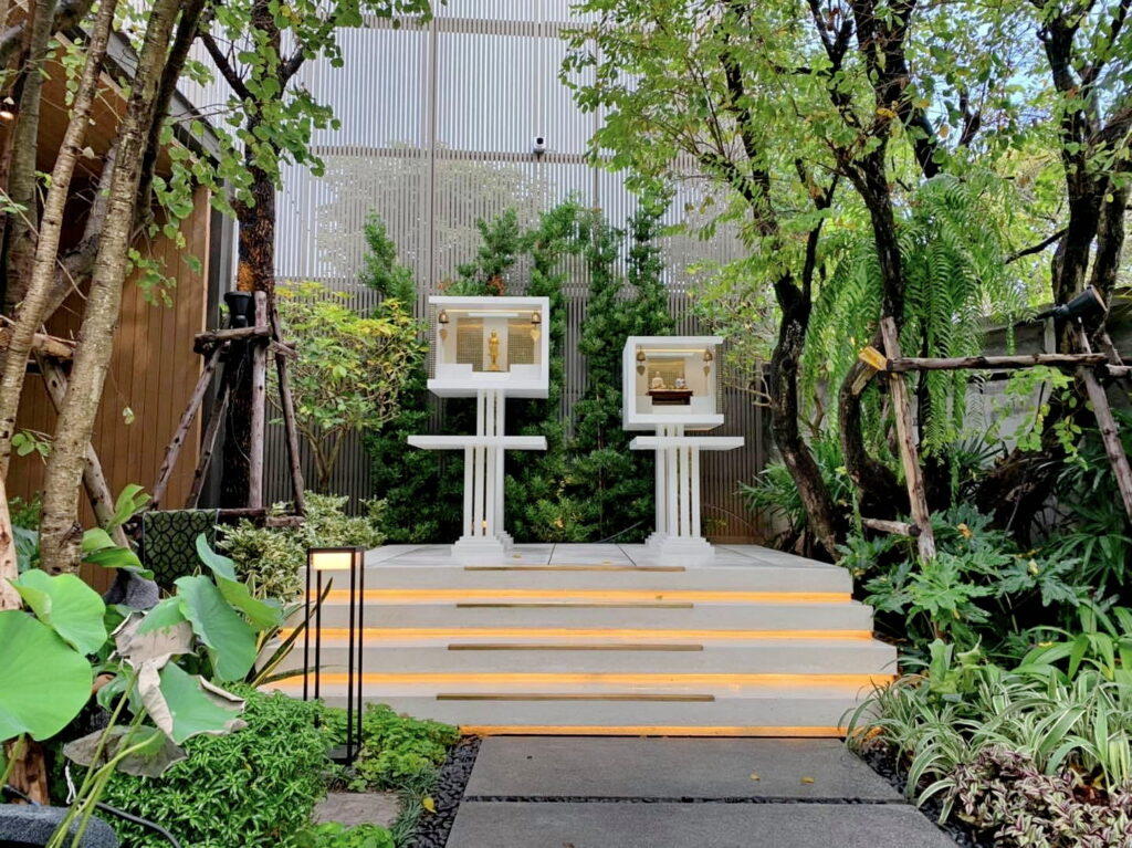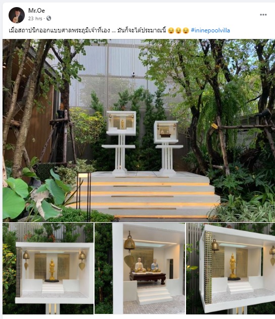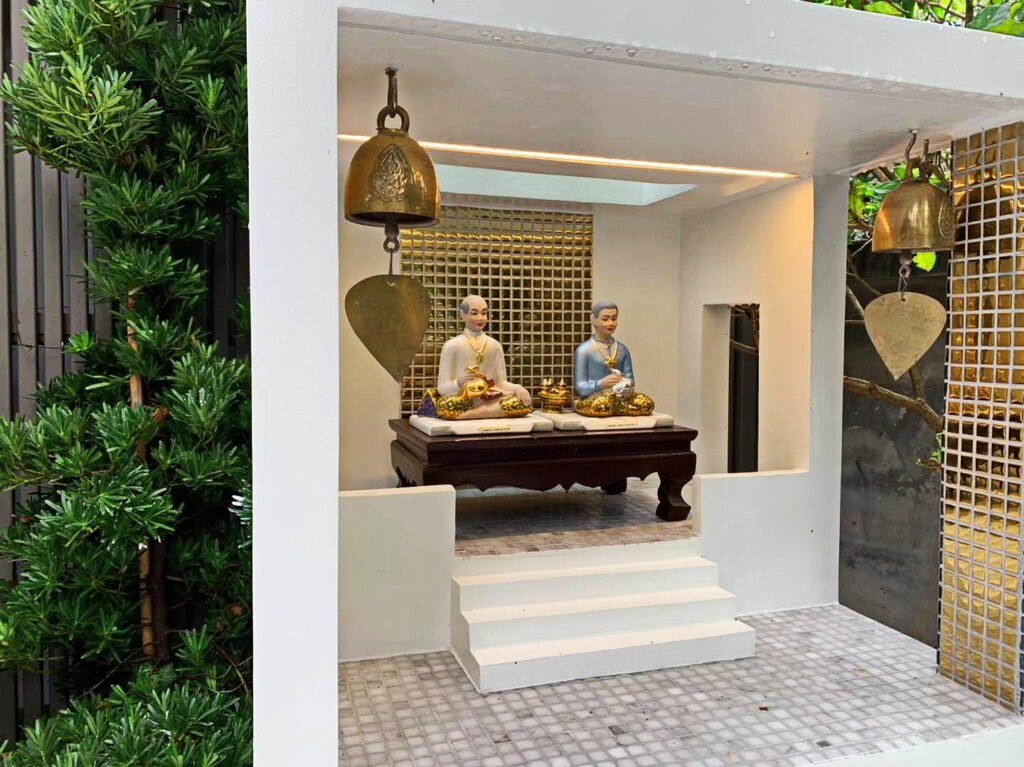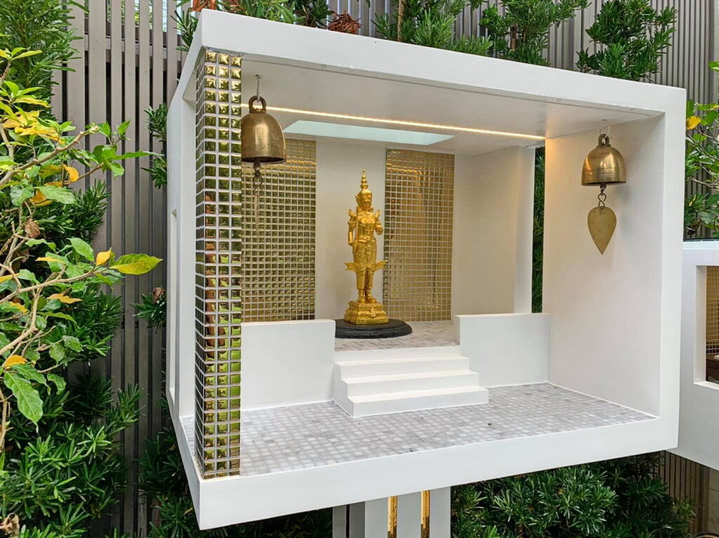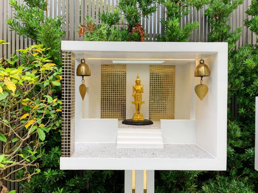 ศาลพระภูมิหลังนี้ออกแบบโดยสถาปนิก รูปทรงกล่องสี่เหลี่ยมโทนสีขาว ดูเรียบง่ายและทันสมัยมากๆ และที่สำคัญคื ทำความสะอาดได้ง่ายกว่าศาลพระภูมิแบบเก่าๆ ทั่วไปอีกด้วย