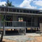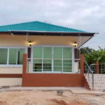 ลักษณะบ้านชั้นเดียวสไตล์โมเดิร์นที่ได้แรงบันดาลใจมาจากบ้านทรงไทน จึงมีการออกแบบยกใต้ถุนสุง พร้อมพื้นที่เฉลียงเปิดโล่ง หลังคาของบ้านออกแบบด้วยหลังคารูปทรงหน้าจั่ว ผนังภายนอกตกแต่งด้วยโทนสีขาว แซมด้วยสีน้ำตาลที่ให้บรรยากาศที่อบอุ่น