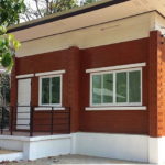 ชั้นสองของบ้านออกแบบให้มีพื้นที่ระเบียงโปร่งโล่ง พร้อมตกแต่งด้วยราวกั้นแบบกระจก นอกจากนี้หน้าต่างของบ้านยังดีไซน์ในลักษณะหน้าต่างกระจกใสขนาดใหญ่ที่ให้ความโปร่งแก่บ้าน