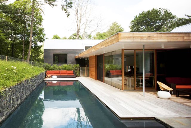 บ้านโครงสร้างคอนกรีต ออกแบบแปลนและรูปทรงที่เรียบง่าย รูปทรงกล่อง และมีหลังคาจั่วชายคาสั้นตกแต่งเพิ่มเติม ตกแต่งด้วยช่องแสงช่องเปิดกระจก สลับกับตกแต่งด้วยไม้ตีชิด และตีเว้นร่อง สร้างจังหวะให้บ้านมีมิติมากขึ้น สะท้อนงานอนุรักษ์ไม้อีกด้วย