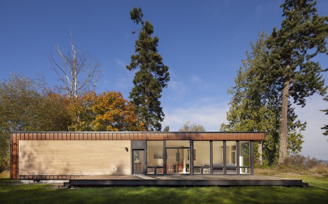 ตัวบ้านโครงสร้างเหล็ก ที่ออกแบบง่ายและก่อสร้างรวดเร็ว ใช้รูปทรงกล่องแนวยาว สร้างมุมมองของบ้านที่แปลกใหม่ ไม่คุ้นตา แต่ก็สวยงามมากตกแต่งด้วยผนังไม้ และยังตกแต่งคู่กับงานเหล็กอีกด้วย