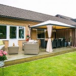 ตัวบ้านจะมีขนาด 2 ชั้น ทรงสี่เหลี่ยม ภายนอกทาด้วยสีขาวล้วน บริเวณหน้าบ้านมีสนามหญ้า พร้อมทั้งสระว่ายน้ำขนาดยาวข้างๆตัวบ้าน ทางเข้าบ้านจะมีชานไม้ ดูตัดกับตัวบ้านสีขาวได้เป็นอย่างดี