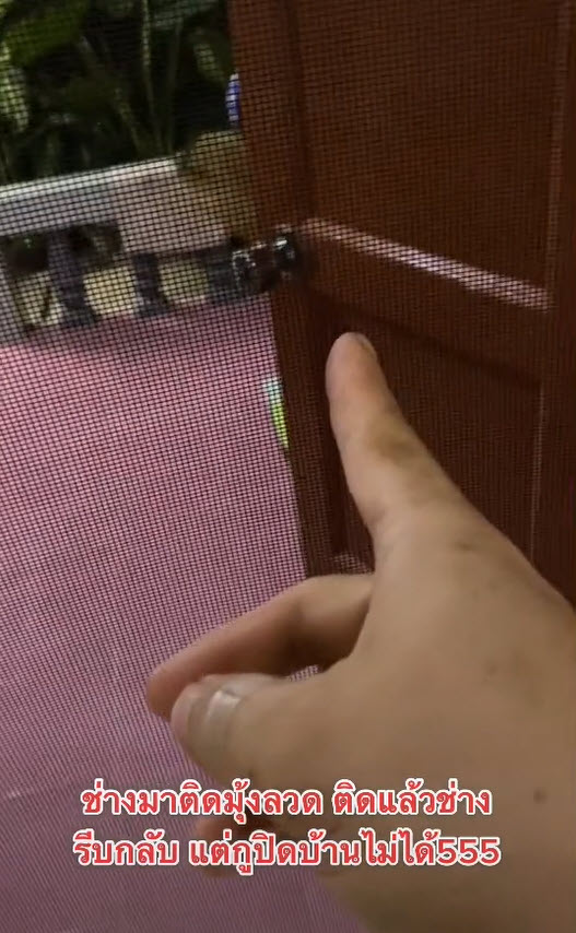 โดยผู้ใช้บัญชี Tiktok @siwadonm ได้โพสต์คลิปให้ช่างมาติดมุ้งลวด แต่ปรากฏว่า เมื่อช่างกลับไปแล้ว เจ้าของบ้านกลับปิดประตูบ้านบ้านไม่ได้