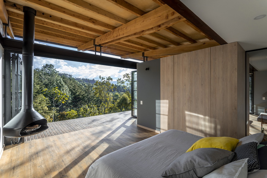 เช่นเดียวกันกับห้องนอนที่ยังคงเน้นความโปร่งโล่ง รวมถึงเฟอร์นิเจอร์ไม้ นอกจากนี้ยังเพิ่มเตาผิงเข้ามาอีกด้วย เพื่อสร้างความอบอุ่นให้กับการพักผ่อนนอนหลับ