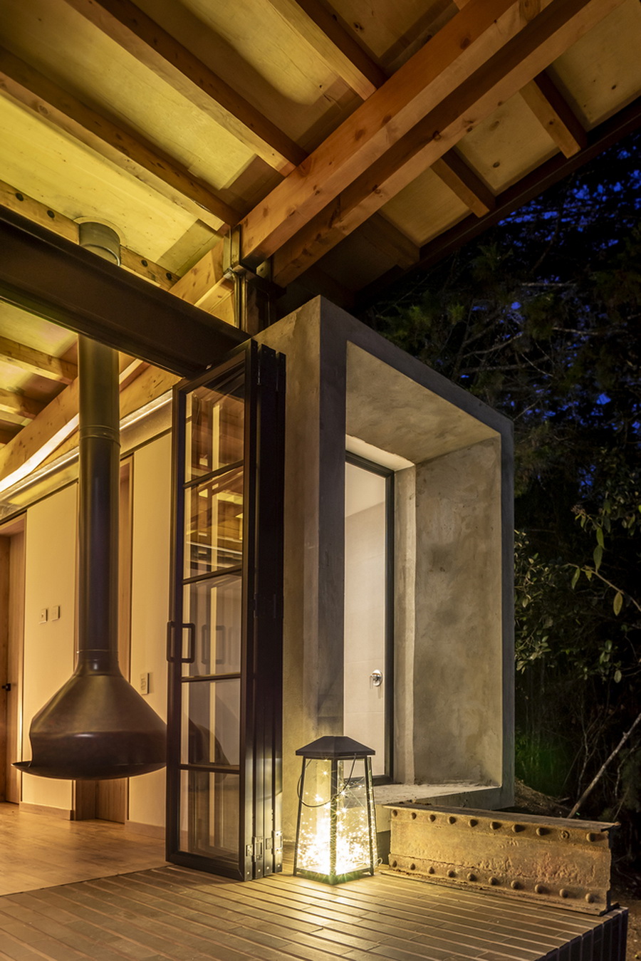 Mountain Cabin เป็นผลงานการออกแบบโดย DARP ตัวบ้านถูกสร้างขึ้นบนเนินเข้าสูง การออกแบบบ้านจะเป็นลักษณะของกระท่อมแนวคันทรีที่เน้นความโปร่งโล่ง สามารถเปิดรับบรรยากาศจากภายนอกได้อย่างสะดวก โครงสร้างหลังของบ้านจะเป็นงานไม้ เพื่อให้เข้ากับบรรยากาศโดยรอบ