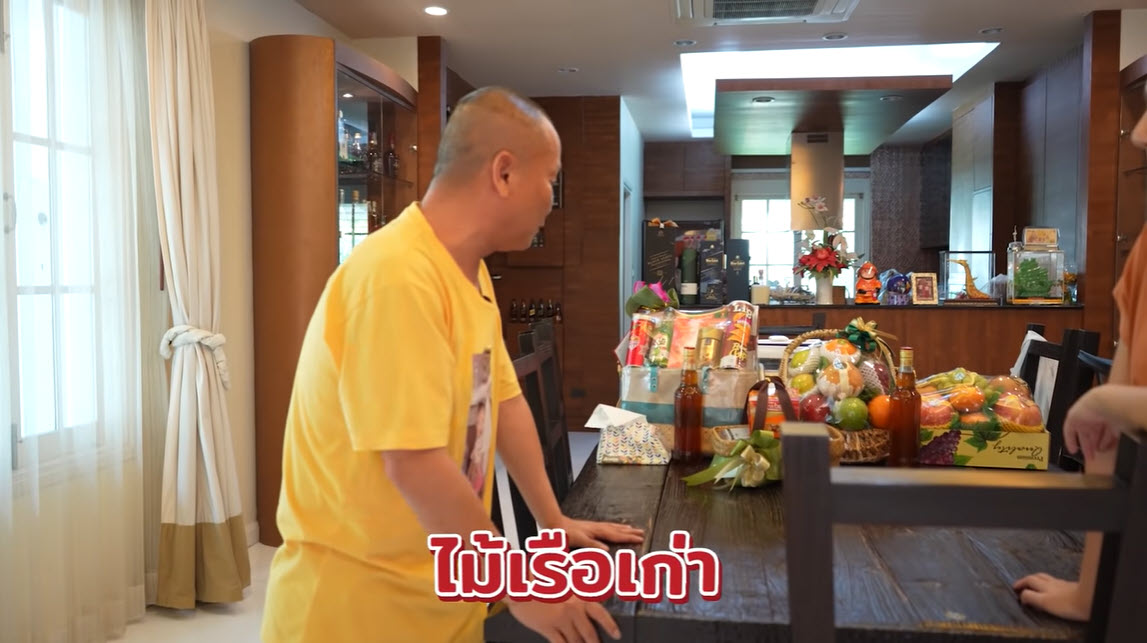 โต๊ะกินข้าวไม้ราคาหลายแสน ครัวฝรั่งหรู เอ็ม บอกว่า พ่อตั้งใจจะทำอาหารฝรั่ง สุดท้ายพ่อทำแต่อาหารอีสาน เอาครกขึ้นมาตำบนครัวฝรั่ง