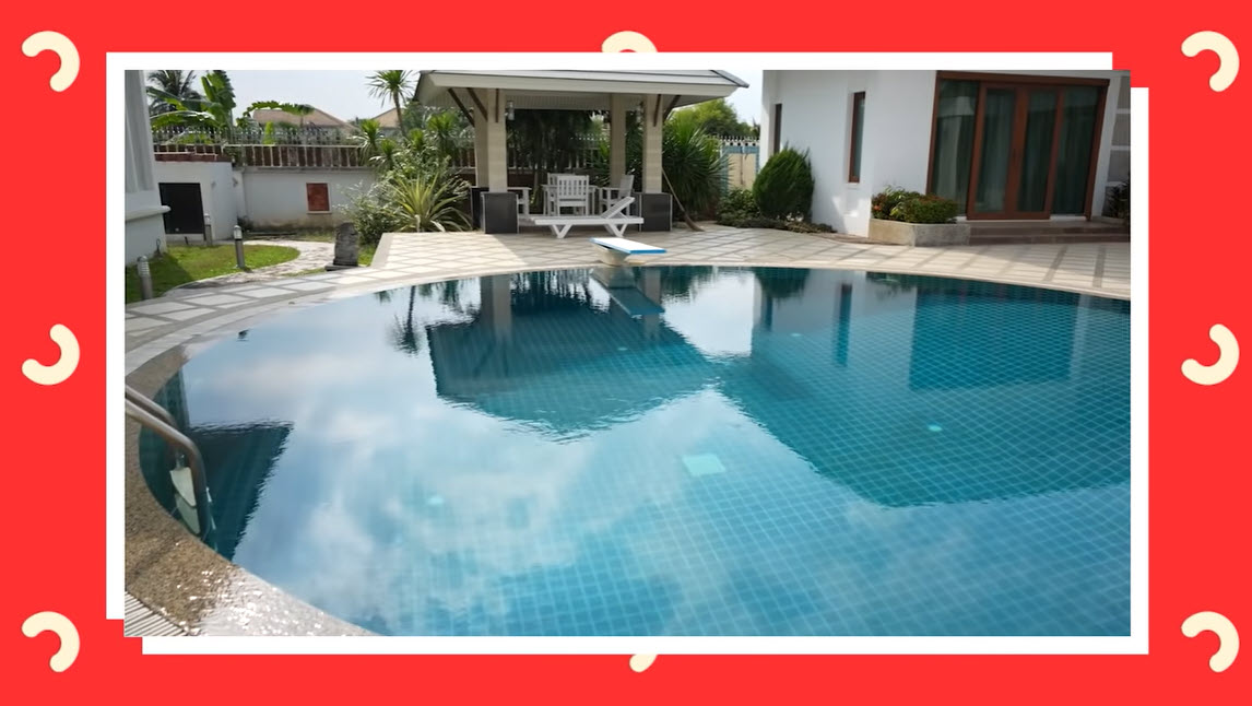 ส่วนที่แพงที่สุดของสระน้ำ คือ ตัวกระเบื้องหินลาวา ที่ทำให้สระนี้ราคาแรงถึง 7 หลัก แต่สำหรับบ้านทั้งหลักนั้น คุณหม่ำบอกว่า 9 หลักเลยทีเดียว