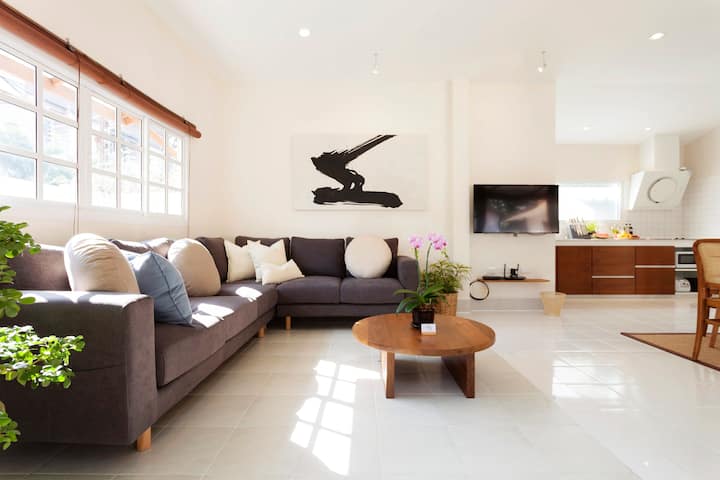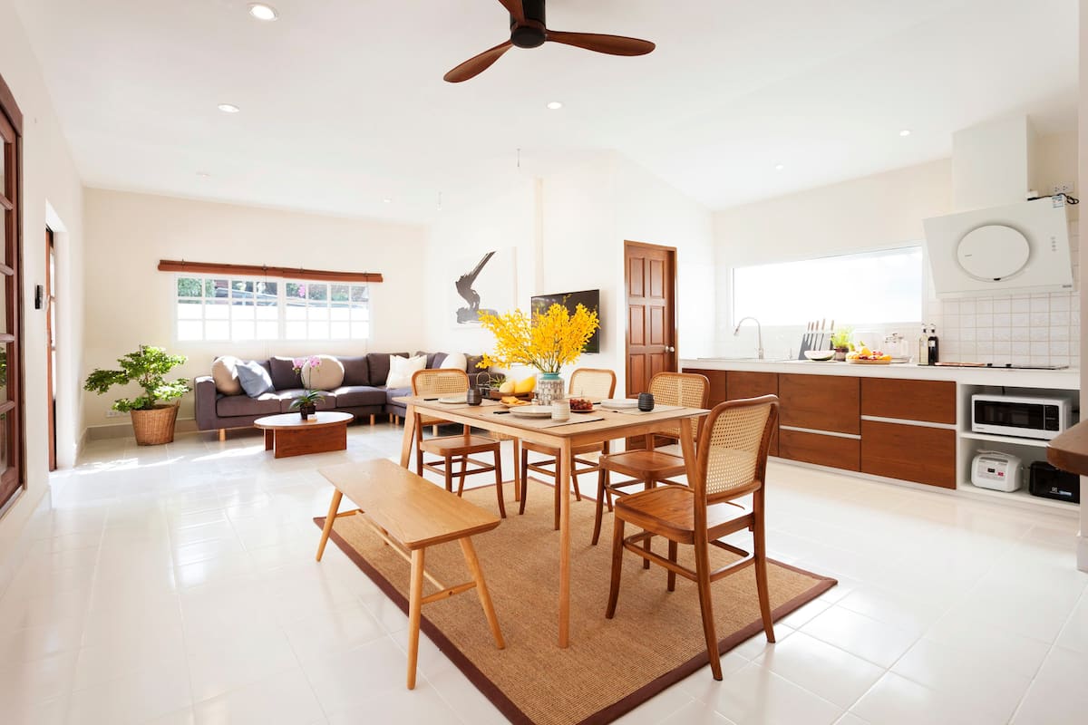 ภายในบ้านจะมีบรรยากาศที่โปร่งสบายเรียบง่าย แต่สิ่งอำนวยความสะดวกต่าง ๆ จะมีความเป็นโมเดิร์นสูง เพื่อให้สามารถรองรับการพักผ่อนของผู้เข้าพักได้อย่างสะดวกสบาย