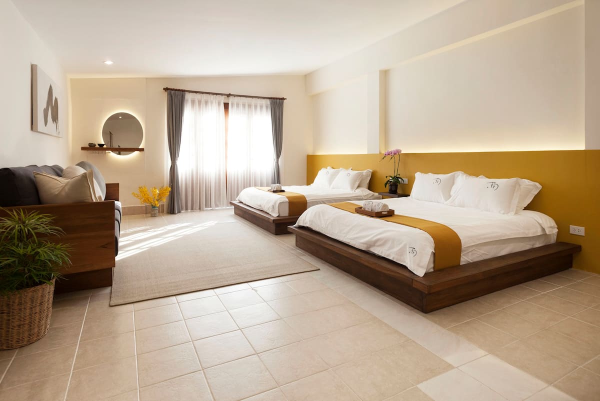 ทางด้านของห้องนอนจะตั้งอยู่ในห้องที่กว้างเป็นพิเศษ ซึ่งเตียงนอนจะเป็นเตียงขนาดคิงไซซ์ถึง 2 เตียง นั่นจึงเหมาะกับการเข้าพักกันแบบครอบครัว