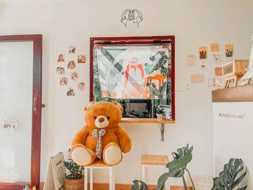 My happiness cafe’ เป็นคาเฟ่ที่เจ้าของสร้างเอาไว้บริเวณหน้าบ้านของตัวเอง ตัวคาเฟ่จึงมีขนาดเล็ก แต่ก็สามารถรองรับลูกค้าได้ดี แถมยังมีรายละเอียดการตกแต่งที่น่ารักอีกด้วย
