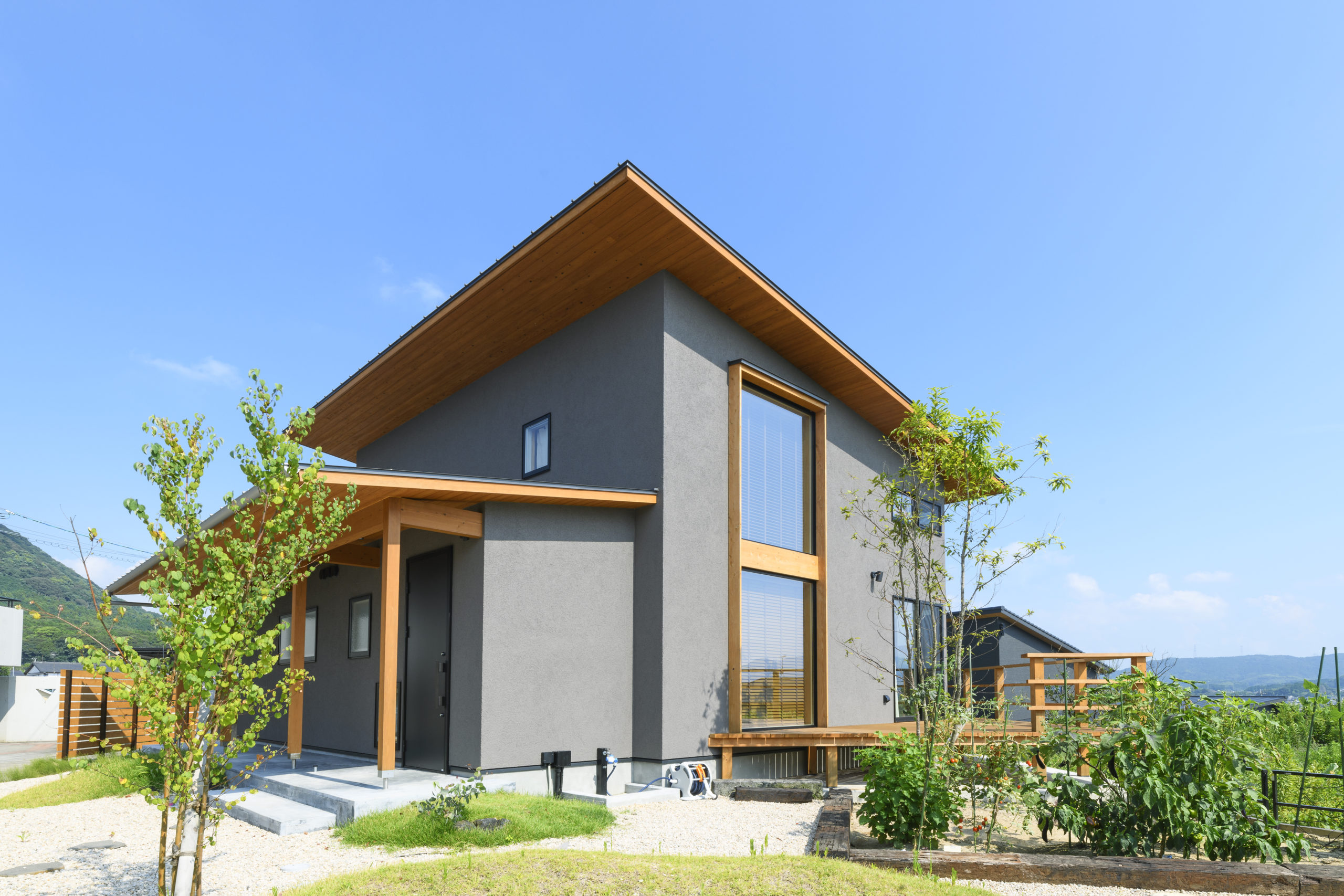 บ้านไม้สองชั้นสไตล์ญี่ปุ่น ออกแบบหลังคาเพิงหมาแหงน พร้อมตกแต่งโทนสีเทาสวยสง่า