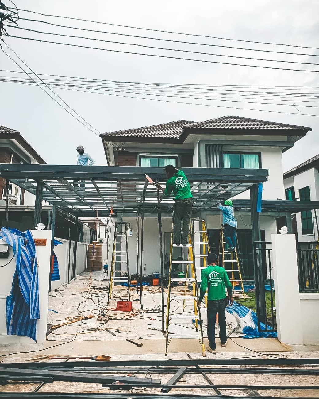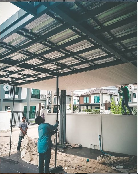 ภายขณะกำลังต่อเติมโครงหลังคาซึ่งเป็นเหล็ก