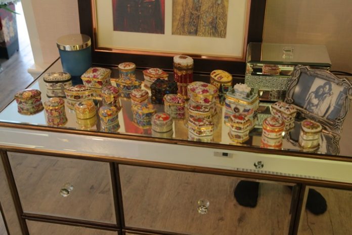 บริเวณนี้จะเป็นตู้กระจกสำหรับจัดวางของตกแต่ง หรือของสะสมที่คุณนิโคลชื่นชิบ ซึ่งช่วยเพิ่มเสน่ห์ให้ห้องได้มากเลยทีเดียว