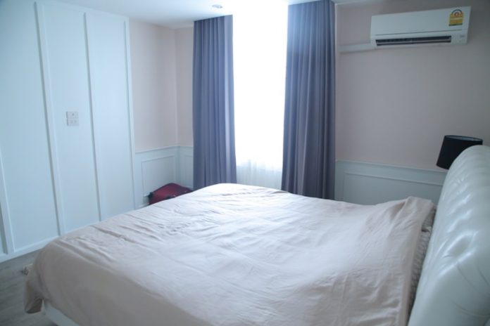 สำหรับห้องนอนนั้น เป็นห้องที่มีการตกแต่งที่เรียบง่าย เพื่อเน้นให้เป็นพื้นที่เพื่อการพักผ่อนนอนหลับอย่างแท้จริง จึงมีเพียงเตียงนอนและของตกแต่งเล็ก ๆ น้อย ๆ