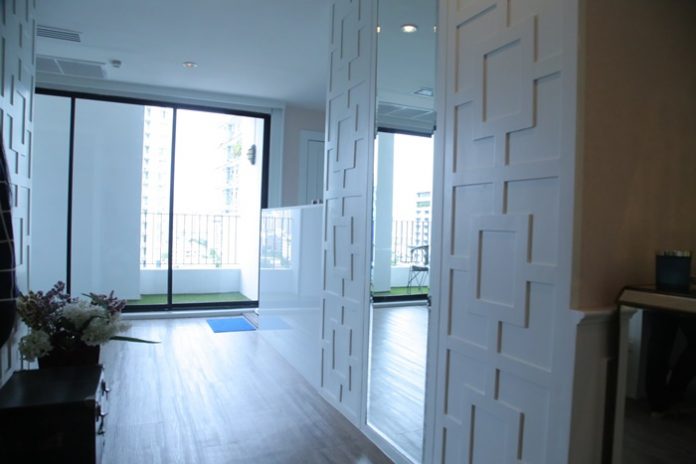เริ่มจากบริเวณด้านนอกห้องกันก่อน โดยคอนโดมิเนียมของคุณนิโคล บริเวณด้านนอกก็จะมีพื้นที่ให้ทำกิจกรรมทั้งในร่มและกิจกรรมกลางแจ้งที่หลากหลาย
