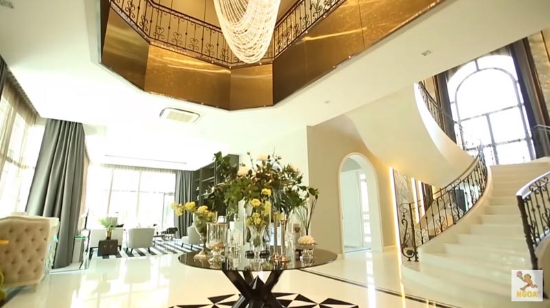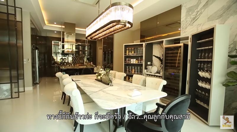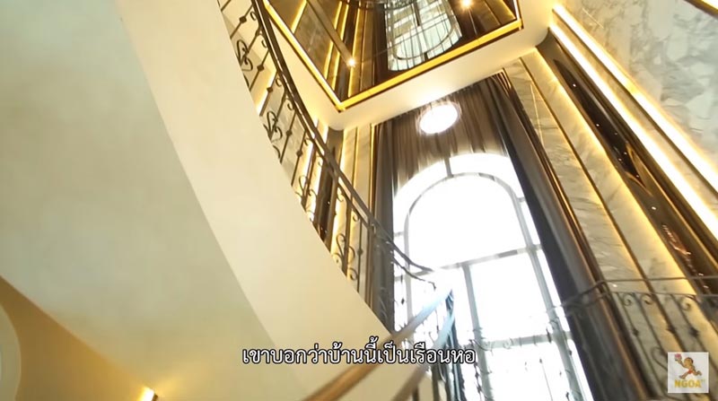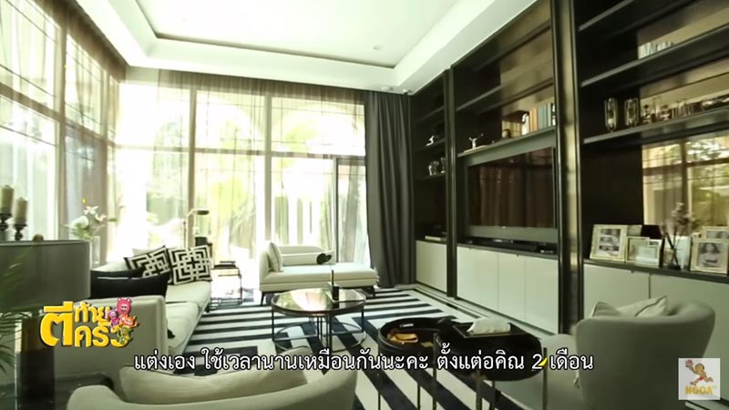 บรรยากาศภายในบ้านเต็มไปด้วยความหรูหรา โอ่อ่า เพดานสูงโปร่ง มีพื้นที่กว้างขวาง ซึ่งการตกแต่งทั้งหมดตั้งแต่ภายนอกจนถึงภายใน สาวเนยเป็นคนออกแบบเองทั้งหมด รวมไปถึงโคมไฟระย้าที่สั่งทำพิเศษ เพิ่มความหรูหราให้กับบ้านตั้งแต่ย่างก้าวแรกที่เดินเข้ามา