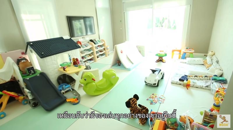 ห้องส่วนตัวของน้องอคิณนั้นเป็นห้องที่รวมของเล่นและของใช้ทุกอย่างเอาไว้ เน้นความสว่างไสวเป็นพิเศษ ตกแต่งด้วยโทนสีขาวและครีม พร้อมทั้งวางเบาะรองพื้นทั่วทั้งห้องเพื่อความปลอดภัยของเจ้าตัวน้อย