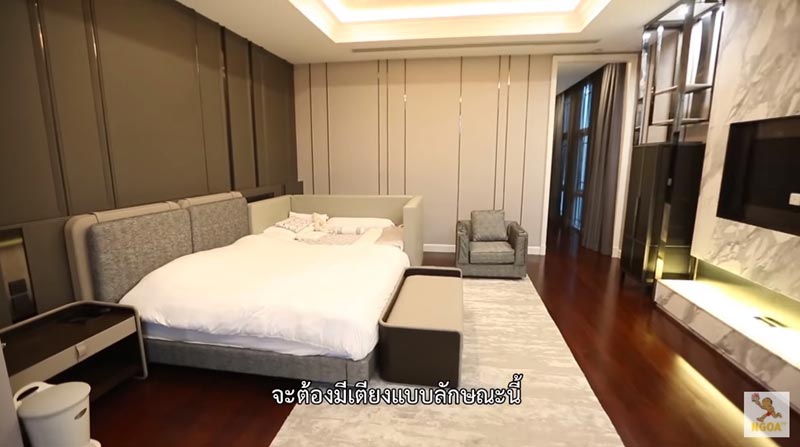 และในส่วนของห้องนอน มีการตกแต่งอย่างเรียบง่าย ดูคลาสสิก เน้นความโปร่งโล่ง มีเพียงเตียงนอนใหญ่ เตียงนอนเด็ก และไม่มีโทรทัศน์ เพื่อการพักผ่อนที่เต็มที่นั่นเองครับ