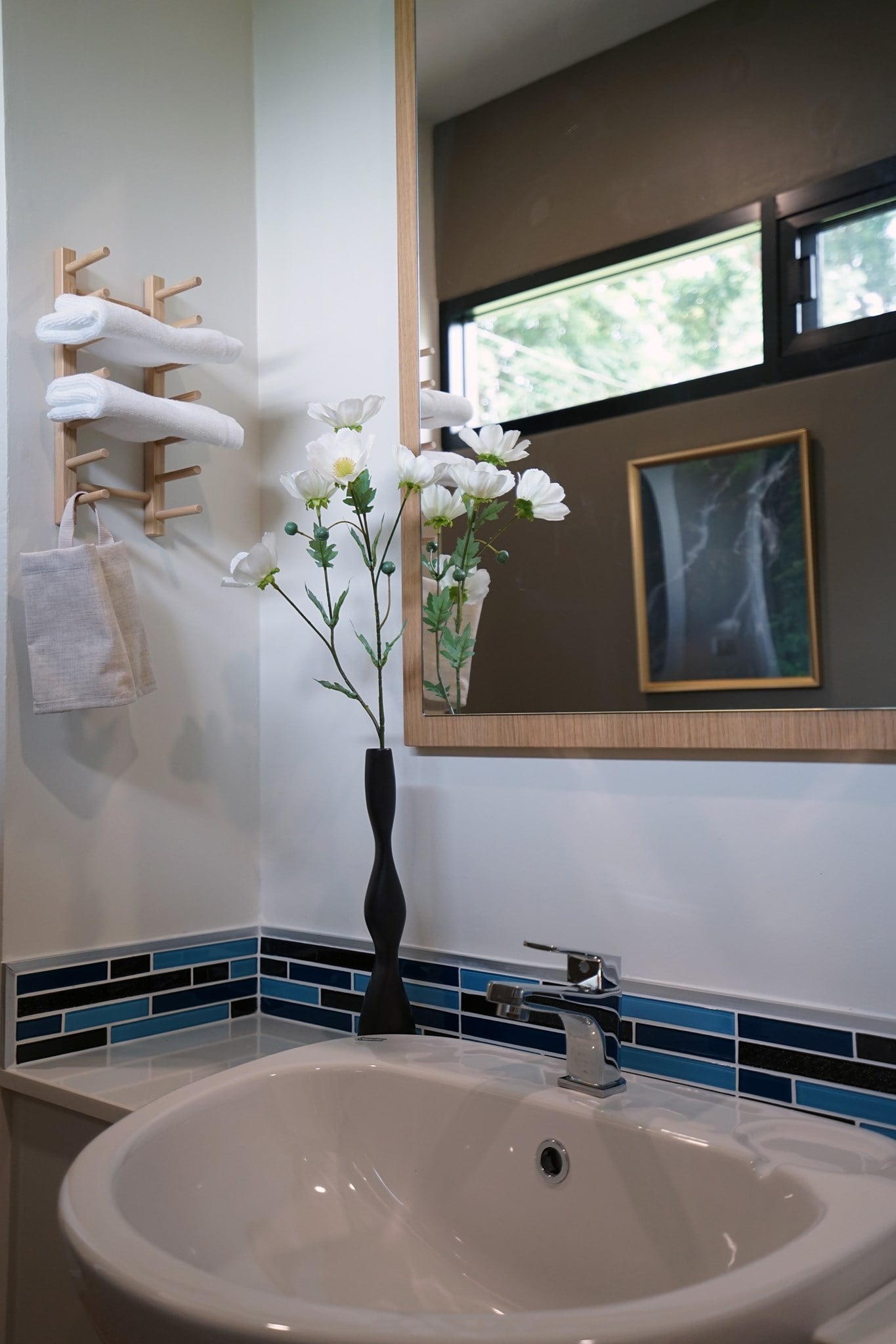 ในส่วนของห้องน้ำเอง เจ้าของบ้านได้ใส่ใจในรายละเอียดของการตกแต่งที่ค่อนข้างมาก จึงทำให้เป็นอีกห้องที่มีเสน่ห์ และใช้งานได้สะดวกเช่นกัน