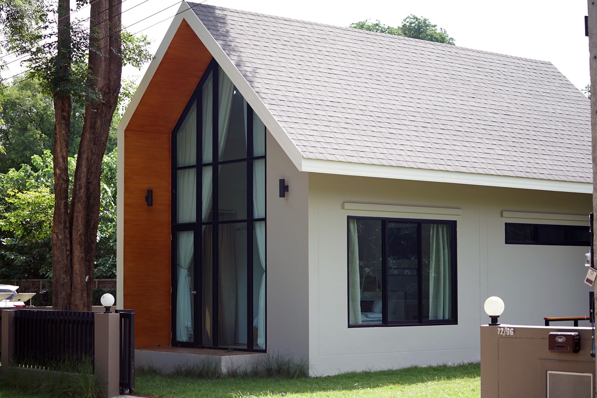 บ้านหลังนี้เป็นผลงานจาก Wellness World Kanchanaburi บ้านพักอาศัยขนาดกลางที่หยิบเอาดีไซน์ของบ้านนอร์ดิกมาสร้าง โดยมีเอกลักษณ์ที่สะท้อนผ่านหลังคาทรงเอเฟรม รวมถึงรายละเอียดการตกแต่งที่ถูกตัดทอนจนดูเรียบง่ายแต่สวยงามไม่น้อยเลย