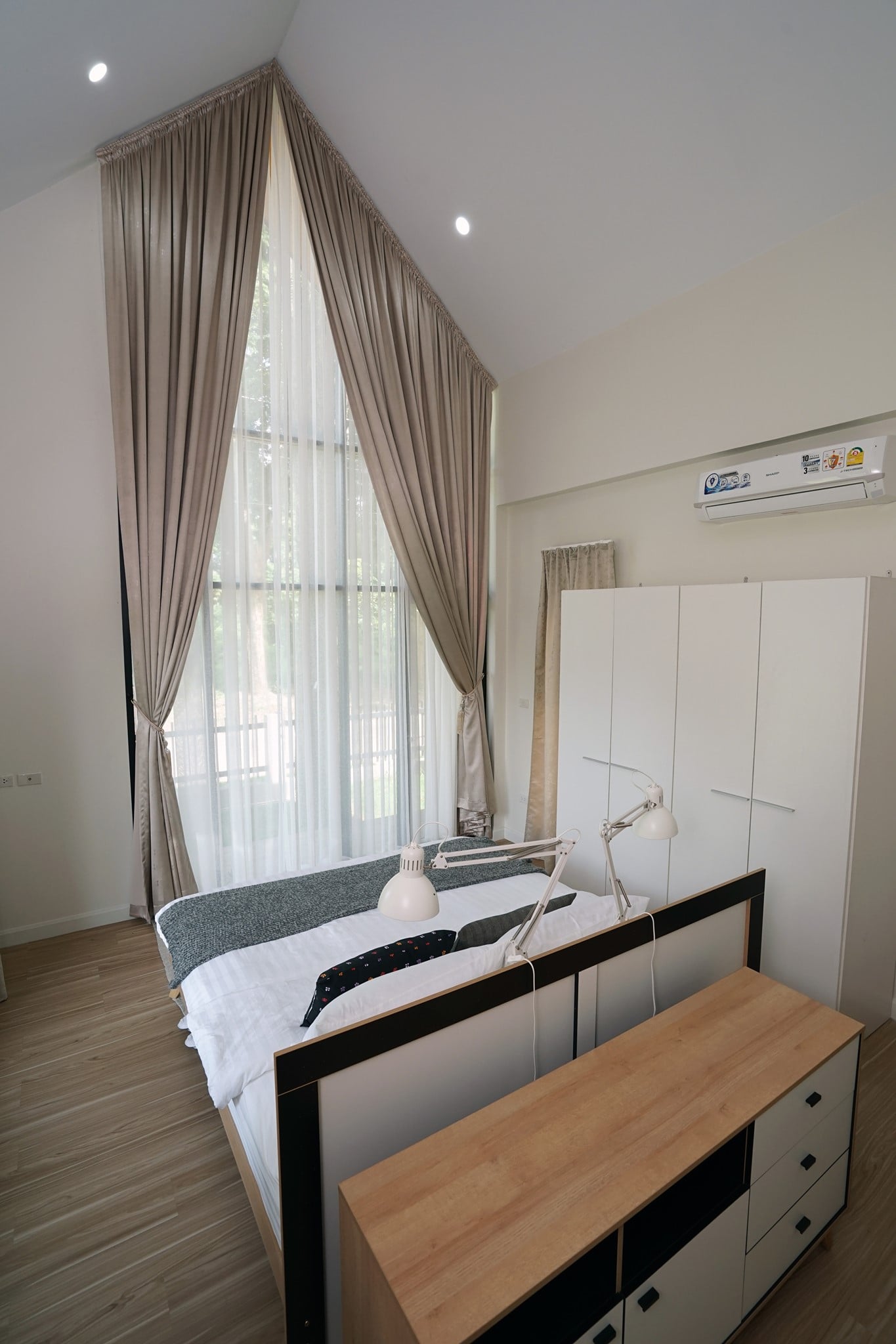 ภายในห้องนอนก็จะเป็นอีกพื้นที่หนึ่งที่มีพื้นที่ใช้สอยที่กว้าง พร้อมกับรายละเอียดการตกแต่งที่ดูสบายตา จึงเป็นห้องที่ออกแบบมาเพื่อการพักผ่อนโดยเฉพาะ