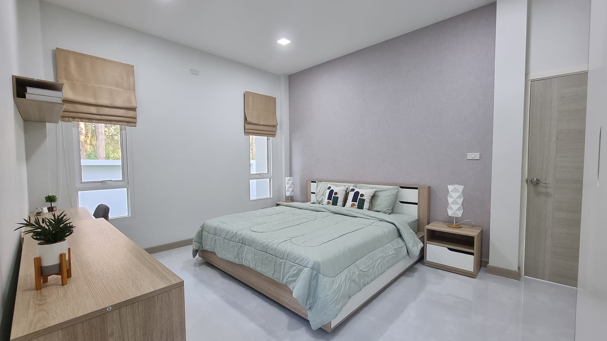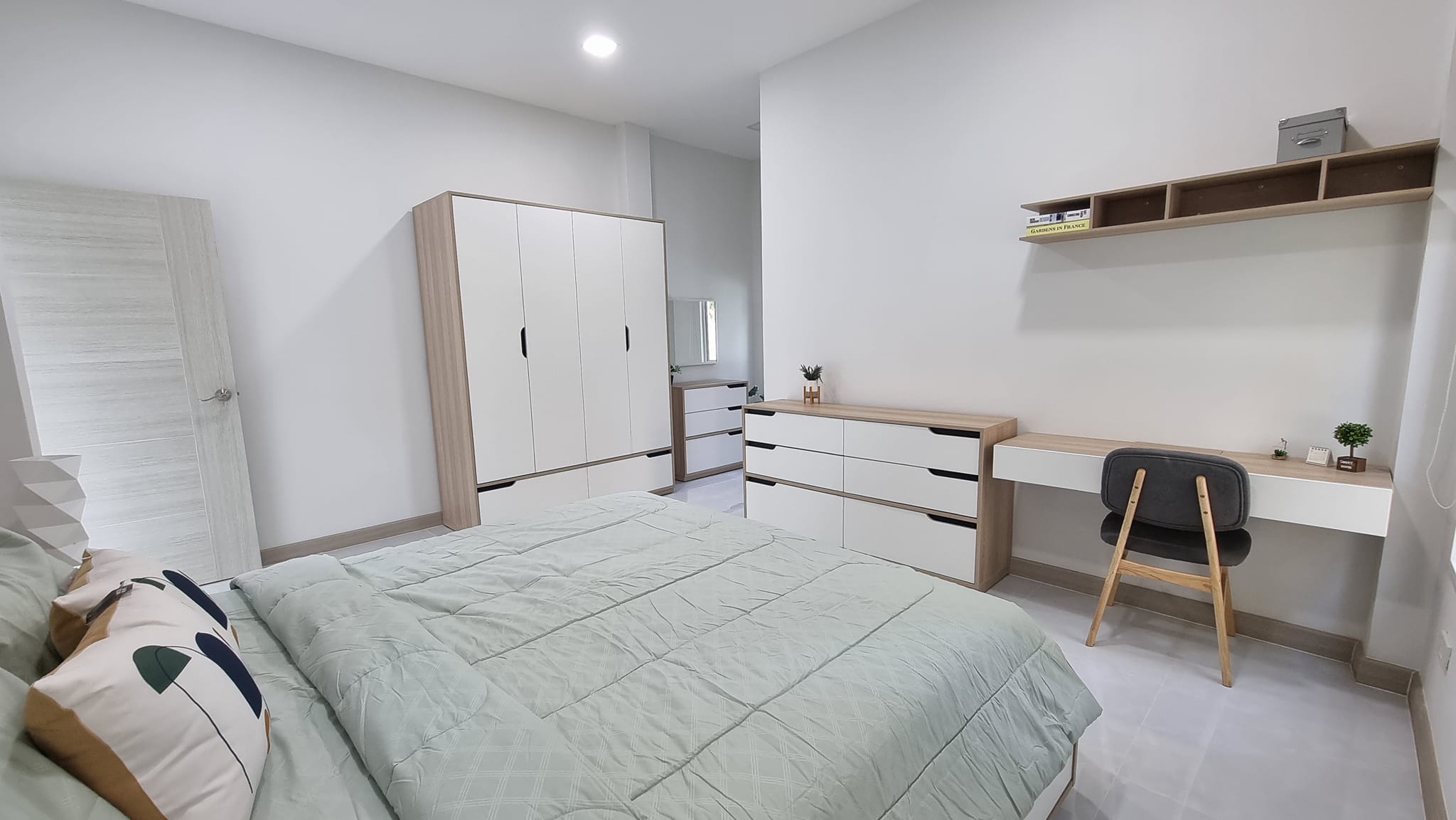 ด้านของห้องนอนก็จะเป็นอีกห้องที่มีสไตล์การตกแต่งที่เน้นบรรยากาศที่สบาย ๆ มีเฟอร์นิเจอร์ในสีเอิร์ธโทน จึงเหมาะกับการนอนที่สุด
