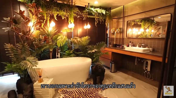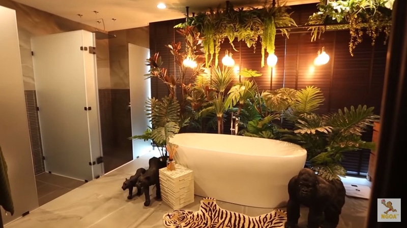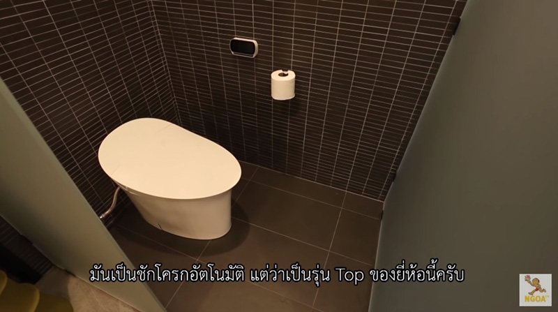 สิ่งที่น่าสนใจอีกอย่างของบ้านหนุ่มโอ๊ตก็คือ ห้องน้ำ มีการตกแต่งที่สวยงาม บรรยากาศคล้ายห้องน้ำในรีสอร์ต ประกอบได้วยอ่างอาบน้ำขนาดกำลังดี นอกจากนี้ ชักโครกยังเป็นแบบอัตโนมัติรุ่น Top ราคาแสนกว่าบาทเลยทีเดียว