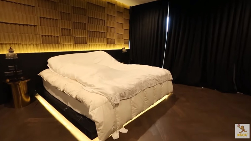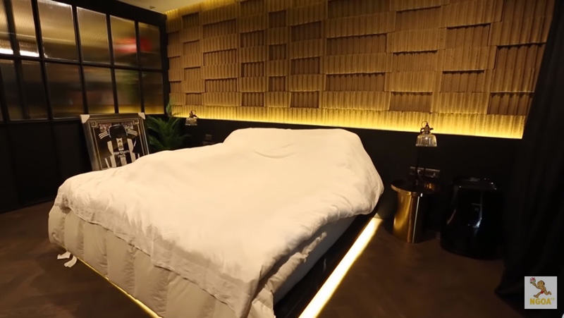 มาถึงห้องสุดท้ายของหนุ่มโอ๊ต ซึ่งก็คือห้องนอนนั่นเอง ตกแต่งอย่างเรียบง่าย วางเตียงขนาดใหญ่ พร้อมของสะสมอย่างเสื้อกีฬาพร้อมลายเซ็น ซึ่งหนุ่มโอ๊ตเล่าให้ฟังว่าเป็นของขวัญที่ ป๊อป ปองกูล เป็นคนมอบให้ และในห้องนอนนี้ก็ไม่มีทีวีหรือข้าวของอื่น ๆ ซึ่งเป็นรูปแบบห้องนอนที่เขาชอบและสบายใจที่สุด