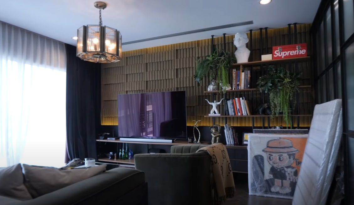 ห้องนี้จะเป็นห้องนั่งเล่นรวมที่จะอยู่บริเวณชั้นล่าง โดยไฮไลท์จะอยู่ที่ทีวี ซึ่งหนุ่มโอ๊ตได้บอกว่าเครื่องนี้ราคา 4 แสนกว่าบาทเลย