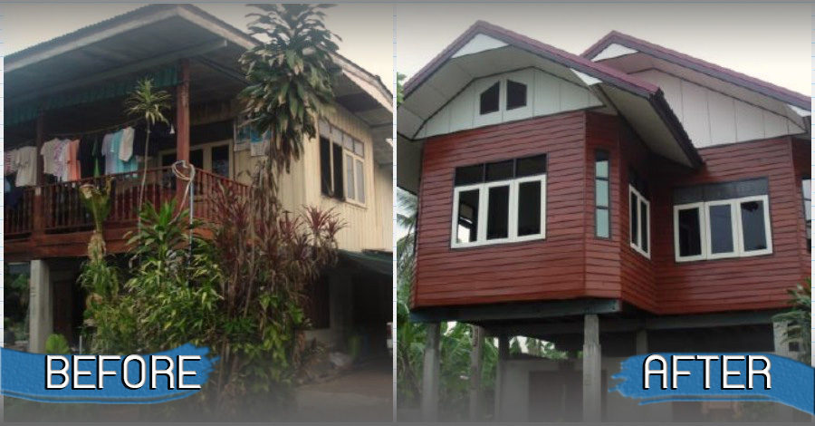 ถ้าหากมีบ้านสภาพเช่นนั้น สิ่งที่เราต้องทำก็คือการรื้อและทำใหม่ เหมือนกับบ้านของคุณ วุฒิศักดิ์ ที่นำมาให้ชาวเว็บได้ชมกันในคราวนี้ เป็นการรื้อบ้านไม้เก่าๆ ที่ปลวกกินจนผุพัง อีกทั้งยังมีการออกแบบที่ไม่ค่อยจะสมบูรณ์แบบเท่าไหร่ โดยใช้วัสดุจากบ้านหลังเก่ามาเสริมด้วย ทำให้ประหยัดงบได้มากเลยทีเดียวครับ ลองมาชมกัน