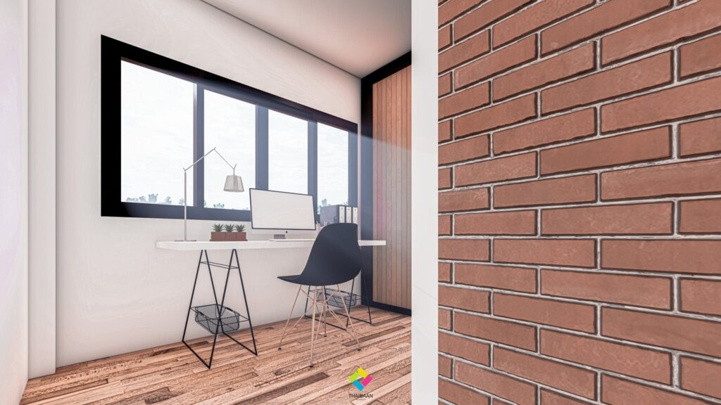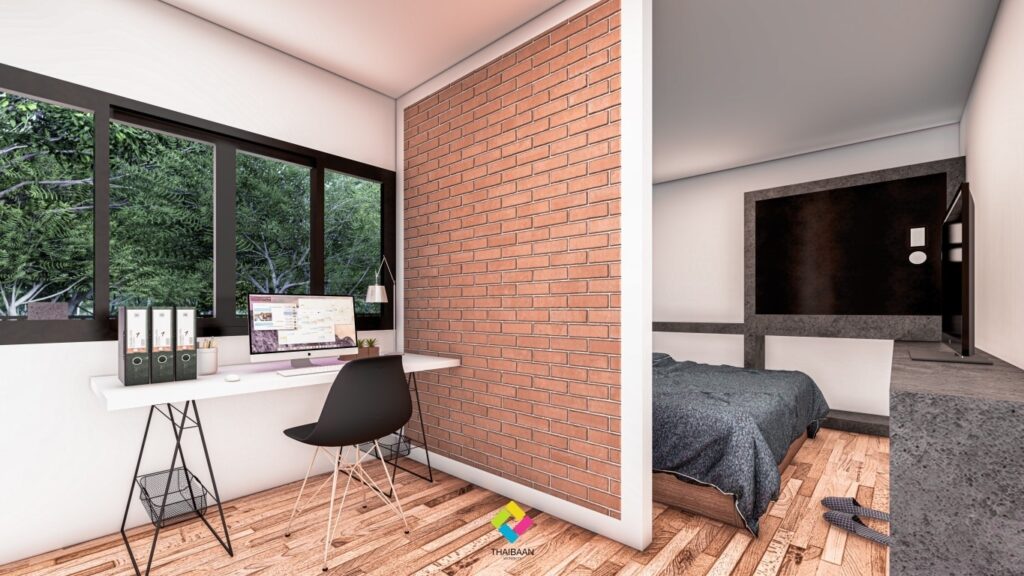 นอกจากนี้ การตกแต่งผนังยังมีลูกเล่นเพิ่มเติมที่ช่วยเพิ่มความน่าสนใจให้กับพื้นที่ภายใน ไม่ว่าจะเป็นผนังลายไม้ ผนังลายอิฐโชว์แนว รวมไปถึงปูนเปลือย สร้างเอกลักษณ์ให้กับบ้านหลังนี้ได้อย่างโดดเด่น