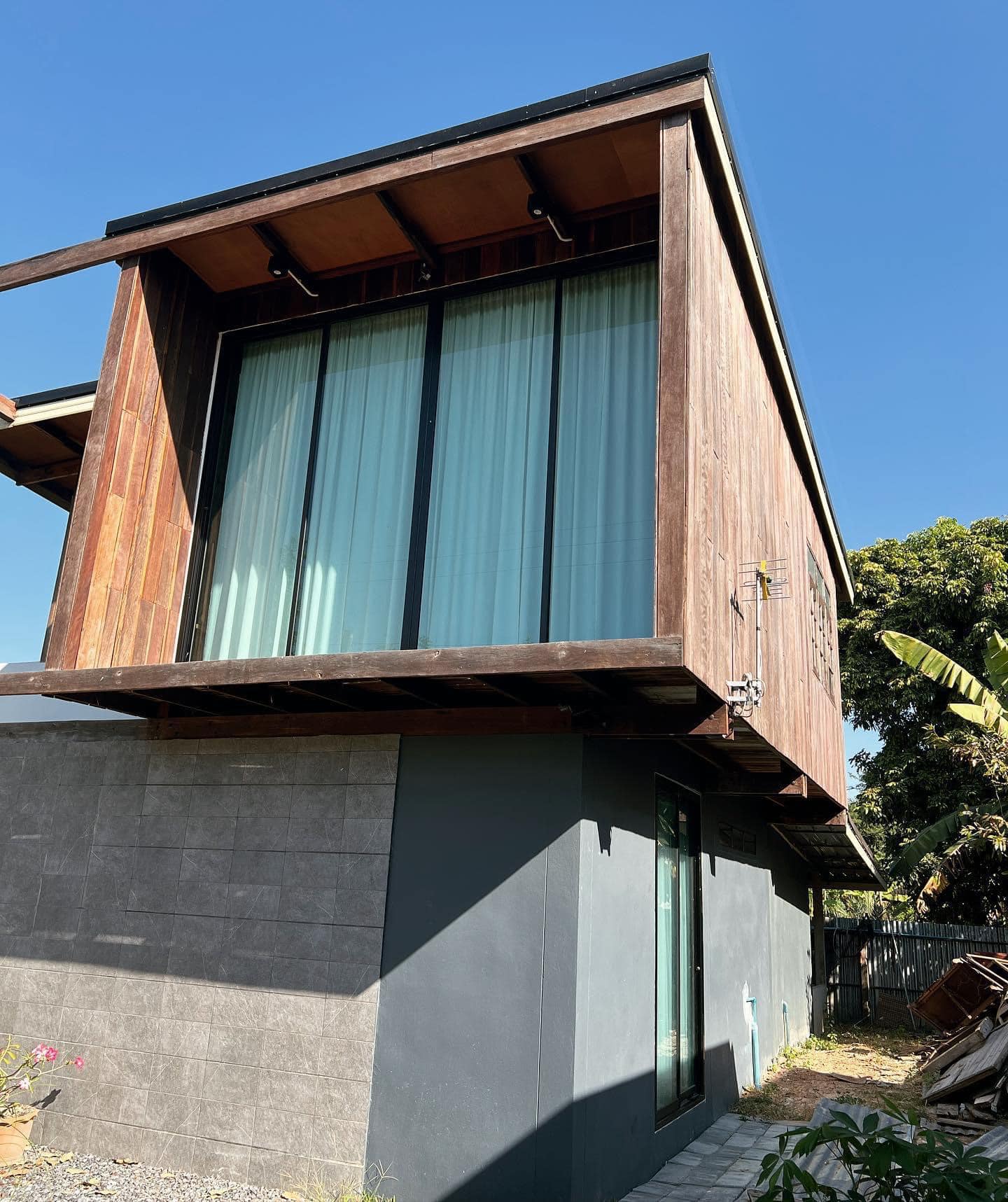 ก็นับว่าเป็นอีกหนึ่งไอเดียที่น่าสนใจไม่น้อยเลย หากใครกำลังมองหาไอเดียทำบ้านโมเดิร์นที่ต้องการบรรยากาศจากบ้านไม้เก่า ไอเดียนี้ก็ตอบโจทย์ได้ดีเลยล่ะ