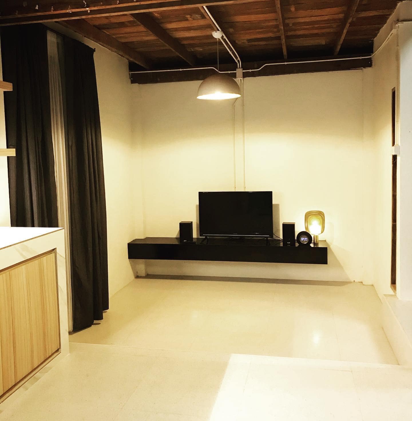 พื้นที่ห้องนั่งเล่นในขณะที่กำลังเริ่มตกแต่ง