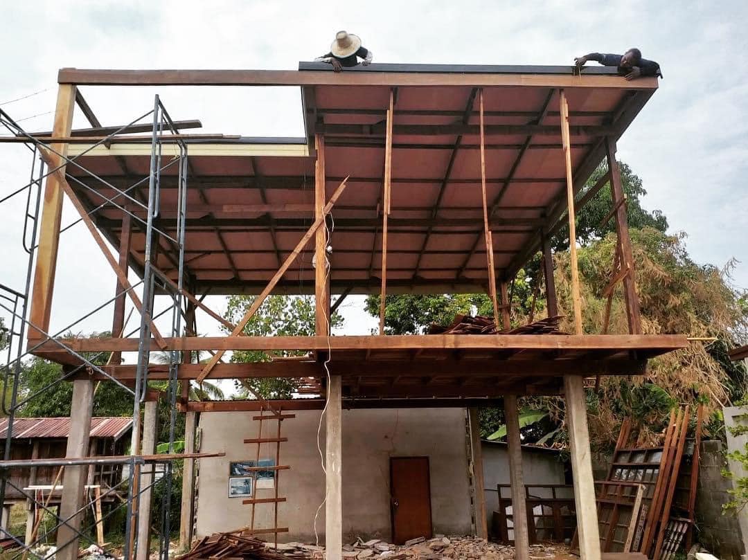ต่อมาจึงเริ่มในส่วนของโครงและงานหลังคา ที่เปลี่ยนจากหลังคาทรงหน้าจั่ว เป็นแบบทรงสโลปที่ดูทันสมัยขึ้น